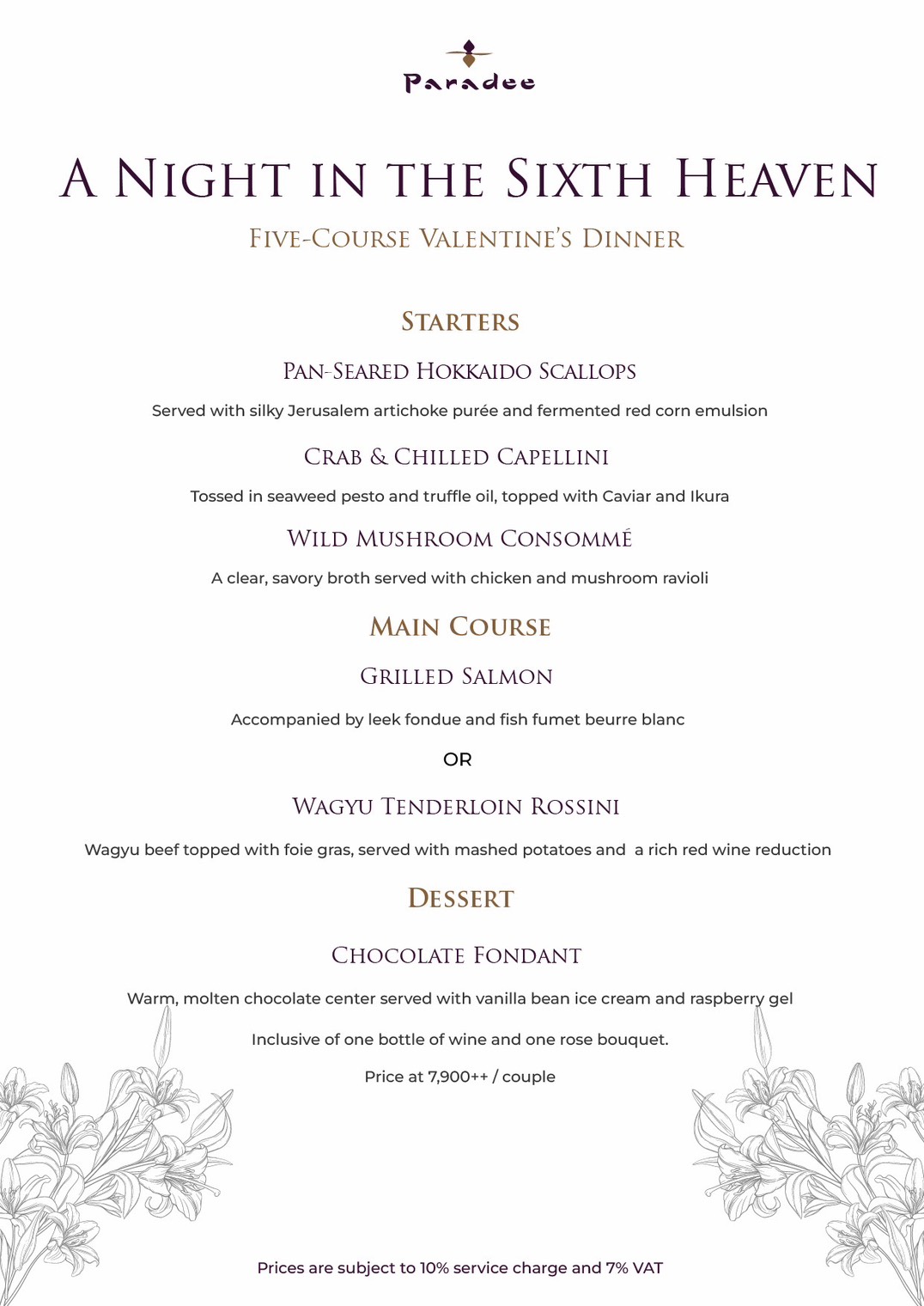 Valentine’s set dinner – 5 courses for THB 7,900++ / couple